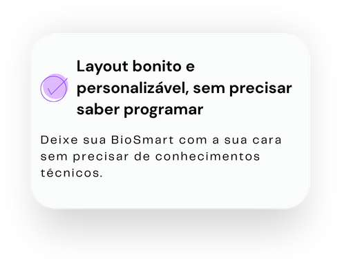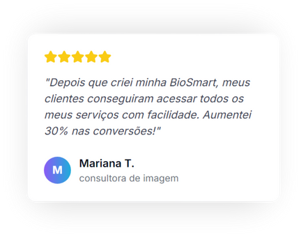 Crie sua presença digital de forma simples, bonita e funcional com a BioSmart. Ideal para quem quer